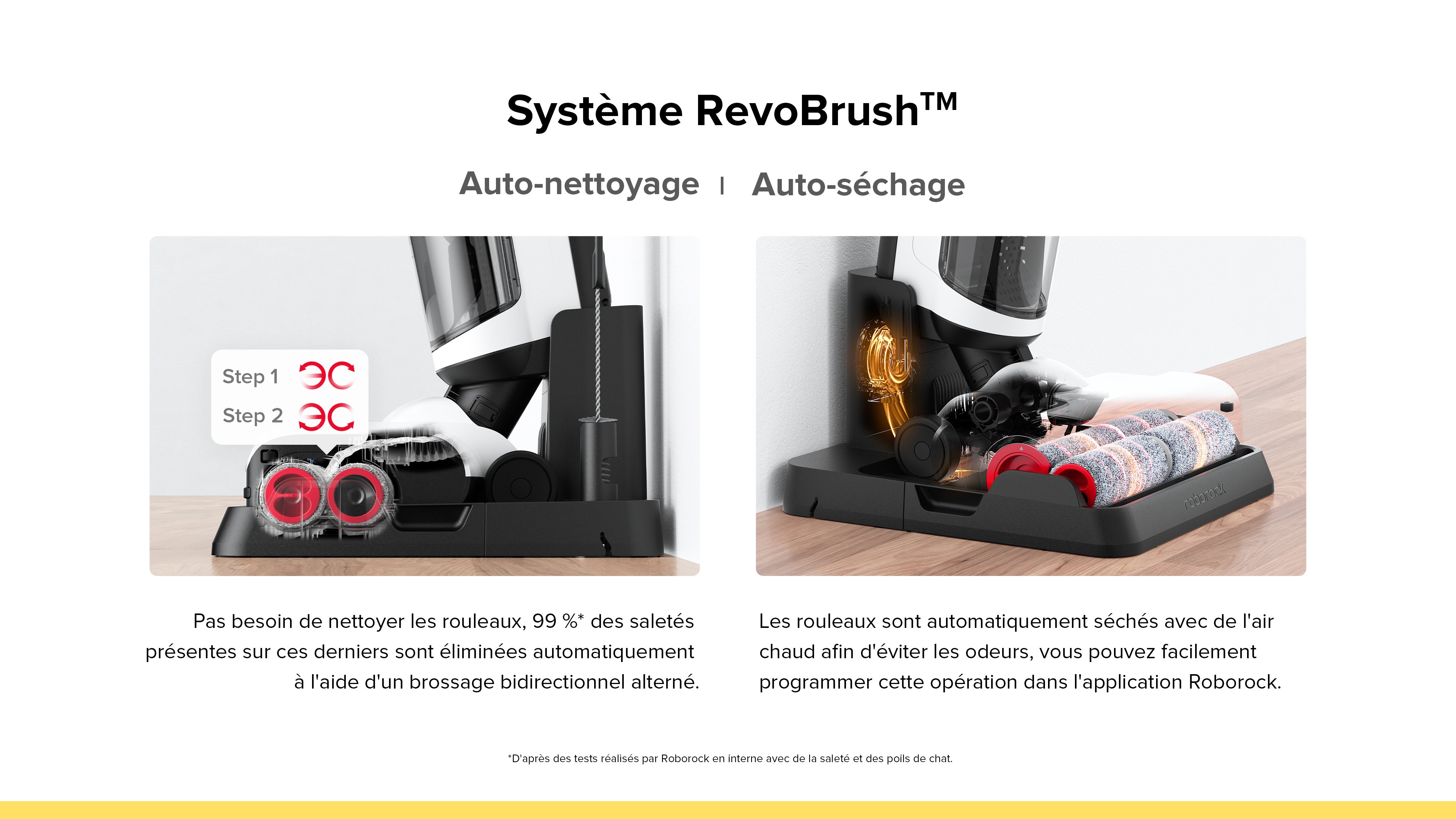 - Mode Séchage des Sols: Vos rouleaux se nettoient toutes seules pendant le ménage. Ne traînez plus de serpillière sale et Automatiquement séchés. Faites votre ménage avec des rouleaux qui restent propres.