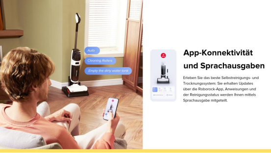 Bénefciez d'un système d'auto-nettoyage, de séchage optimal et de mises à jour avec l'application Roborock, Vous obtiendrez des instructions concernant l'état de nettoyage en direct via des alertes vocal.