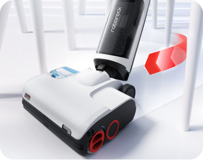 Une plus grande puissance d'aspiration vers le haut rend l'aspirateur 3 en 1 sans fil Roborock Dyad Ultra plus léger à manipuler et plus facile à pousser en avant ou à tirer en arrière.